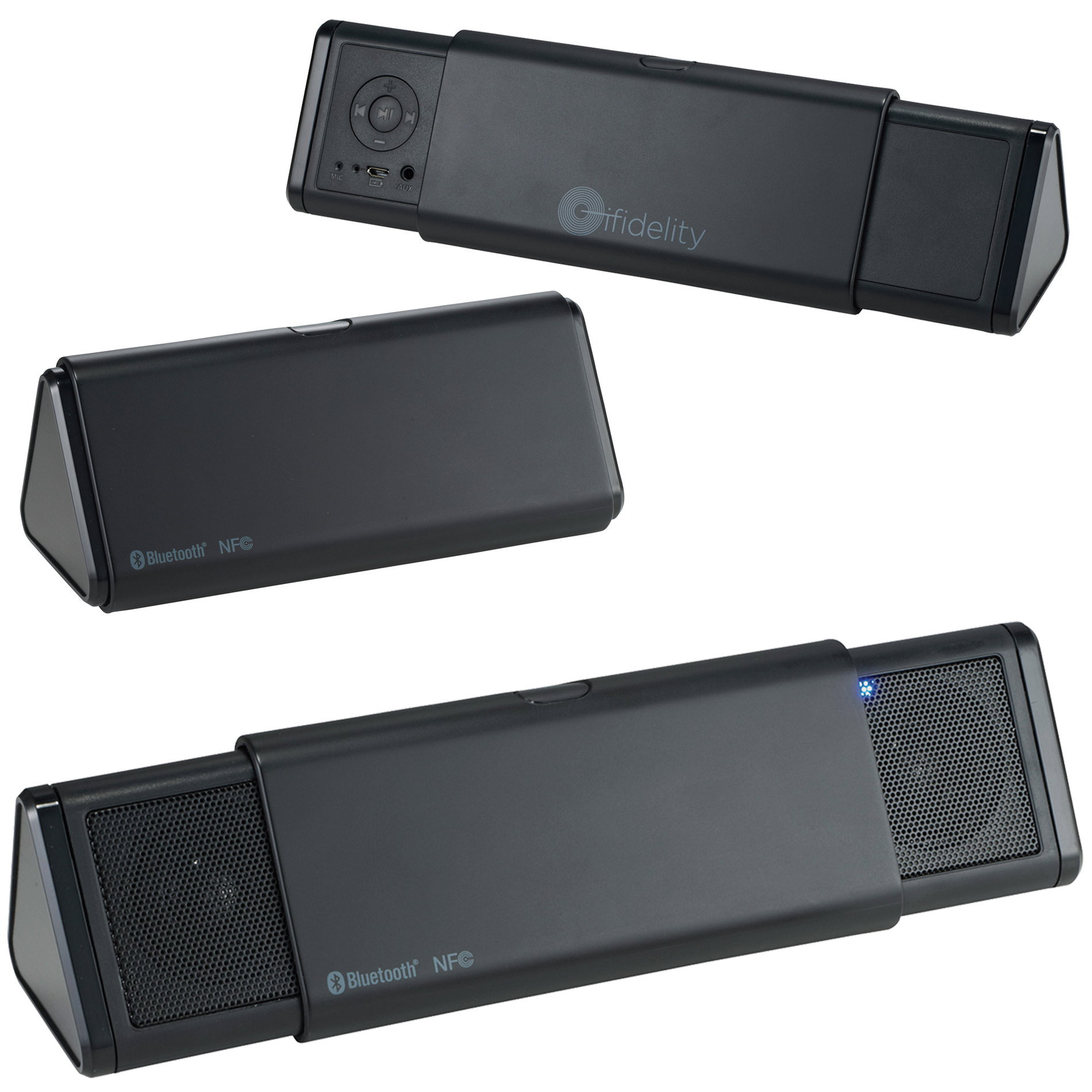 La bocina Bluetooth Sideswipe con tecnolog¡a NFC es la perfecta compa¤¡a para Smartphone o cualquier otro dispositivo multimedia. Su estuche prism tico estiliza el escritorio y tambin puede ser portable. Presiona el bot¢n de encima para expandir sus bocinas. La bocina Sideswipe te permite tener una llamada en conferencia gracias a su micr¢fono incluido. Su Tecnolog¡a NFC permite f cilmente conectar la bocina con otros dispositivos compatibles con NFC, tales como Samsung,Nokia,Sony y otros m s. Incluye cable de audio de 3.5mm y cable cargador de USB a Micro USB.