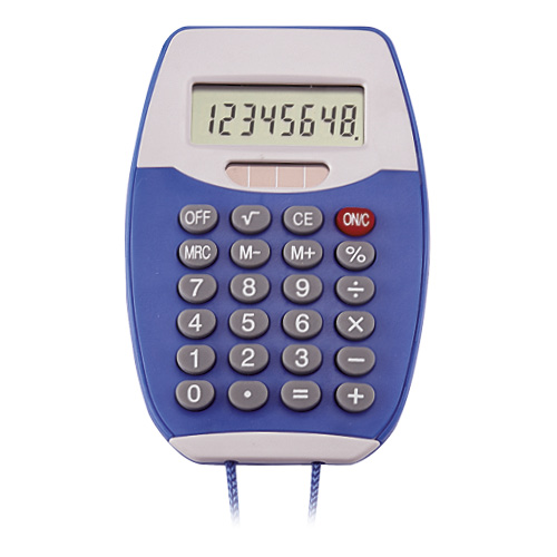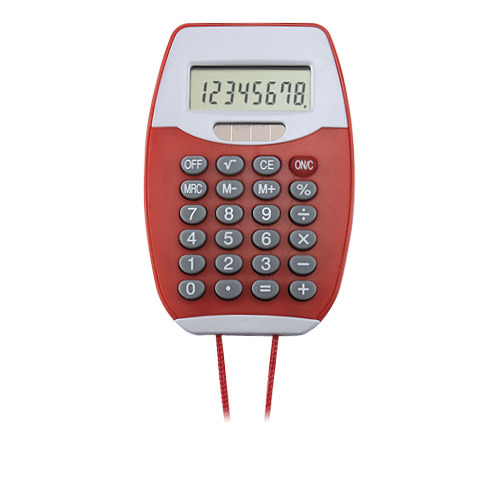 CALCULADORA COLGABLE ENCORE COLOR AZUL, NEGRO, ROJO.