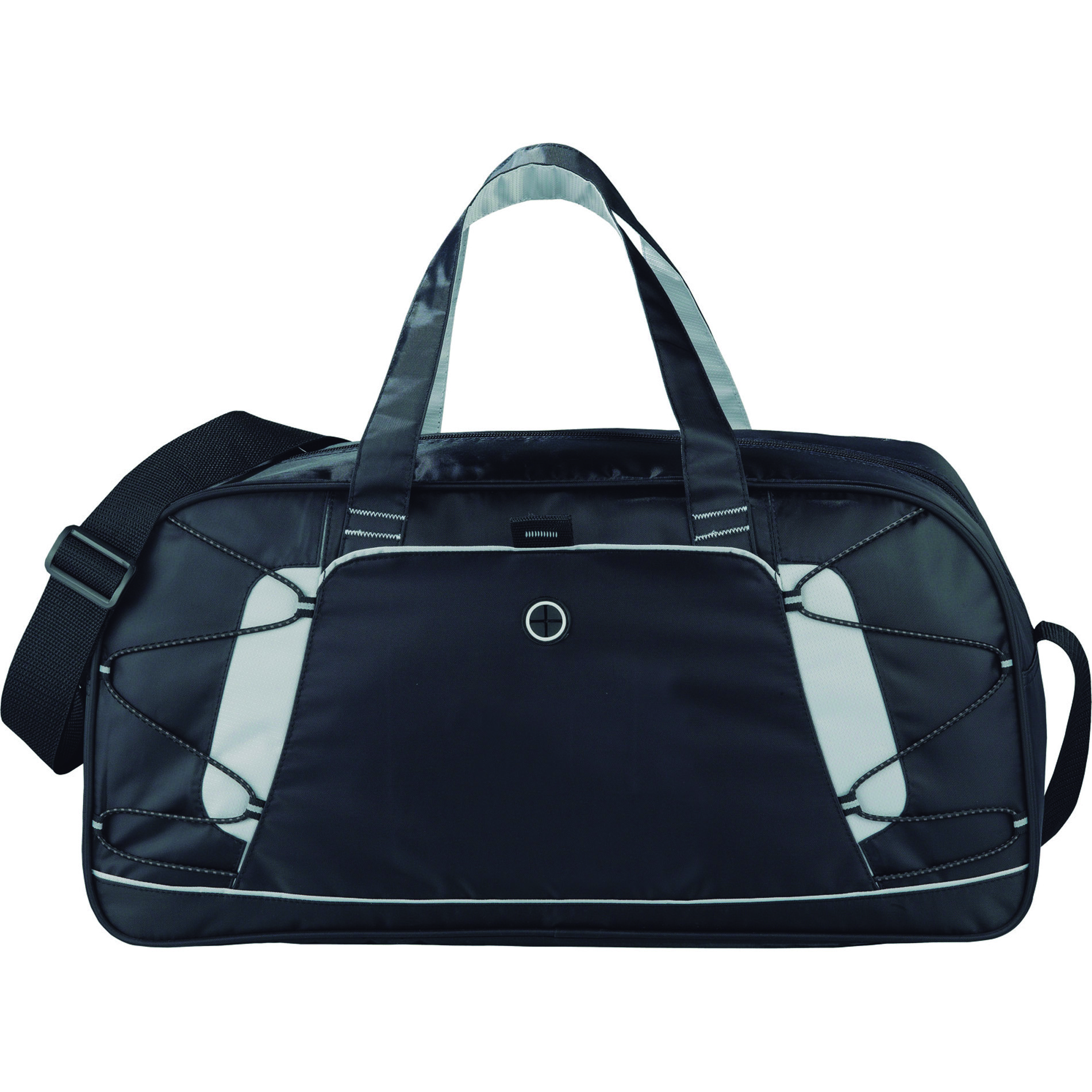 Compartimento principal con cierre. Bolsillo de dispositivos frontal de velcro con puerto para aud¡fonos. Cables tipo bungee el sticos y arillo para bol¡grafo . Correa para hombro ajustable y asas de contraste, para cargar.