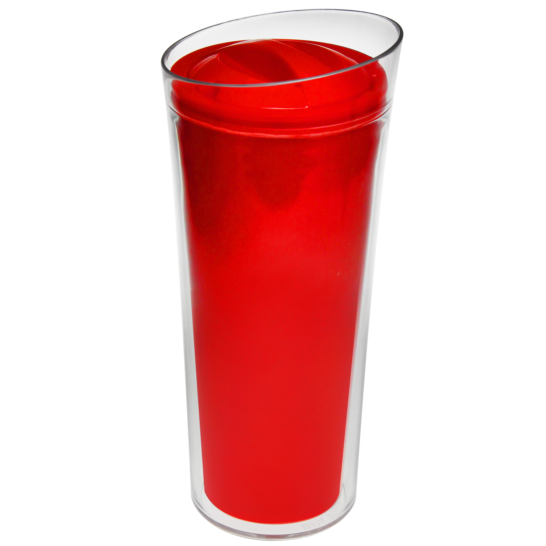 Vaso Fresh de doble pared con tapa y mecanismo de apertura, transparente por fuera. Capacidad de 450ml